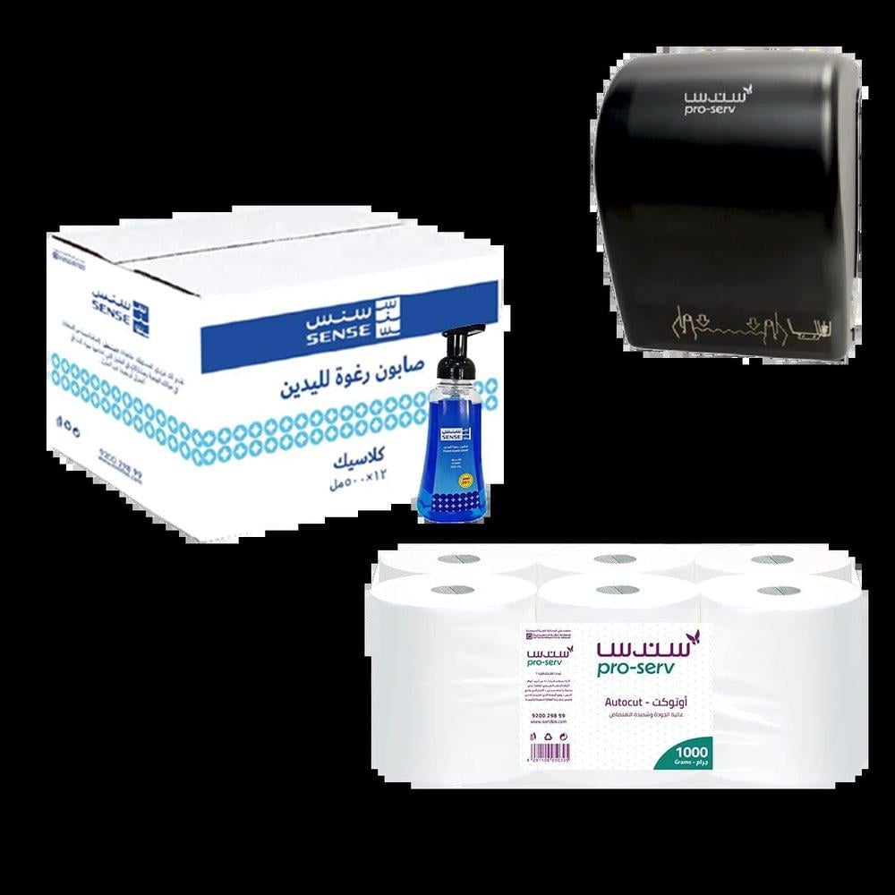 ماكينة مناديل اوتوكات + 6 رول اوتوكات + كرتون صابون رغوة